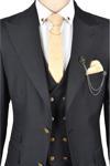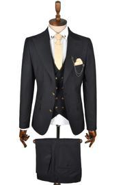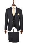 Deepsea Erkek Siyah Sivri Yaka Slim Fit 3lü Takım Elbise 2300244