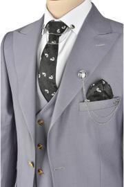 Detay: Ceket, yelek ve pantolon olarak satılmaktadır. Çift düğme, astarlı, cepli çift yırtmaçlı takım elbise.