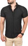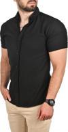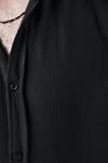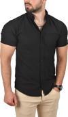 Deepsea Erkek Siyah Slim Fit Pamuklu Spor Gömlek Likralı Dar Kesim Jakar Kumaş Kısa Kol Gömlek 2501210