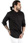 Ürün Adı: DeepSEA Yarım Düğmeli Hakim Yaka Flamlı Keten Uzun Kollu Erkek Gömlek