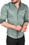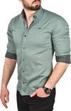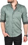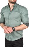 Deepsea Erkek Yeşil Slim Fit Pamuklu Kot Gömlek Kolay Ütülenebilir Çıt Çıtlı Likralı Spor Gömlek 2502504