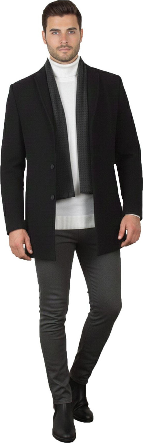 Deepsea Siyah Regular Fit Yakası Çıkabilen Triko Yaka Erkek Kaşe Kaban – Düğmeli • Tek Yırtmaç – 2407000