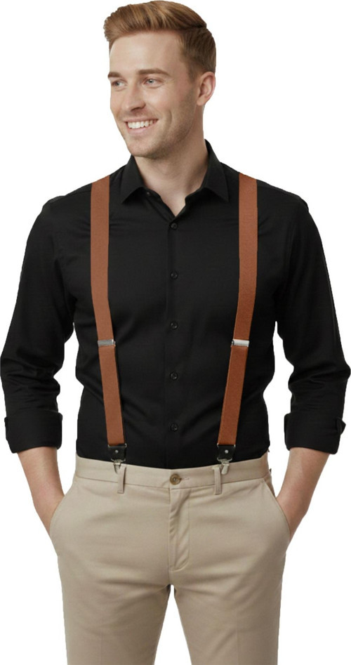 Deepsea Unisex Taba Derili Esneyebilen Lastik Ayarlanabilir Metal Klipsli Pantolon Askısı 2602025