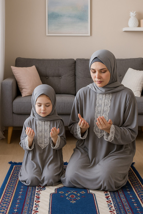 - Gri renk seçeneğiyle hem anne hem de kız çocukları için uyumlu bir stil oluşturur.