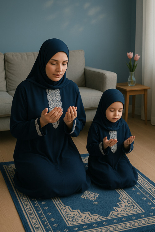 Defkay Anne Kız Kendinden Başörtülü Namaz Elbisesi Takımı