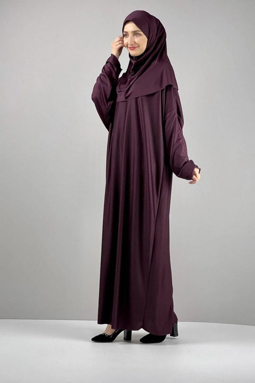 - Zarif mor rengiyle dikkat çeken bu namaz elbisesi, şıklığı ve rahatlığı bir arada sunar.