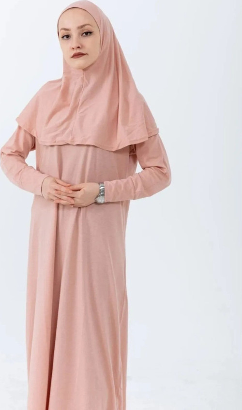 - Zarif pembe rengiyle dikkat çeken bu namaz elbisesi, şıklığı ve rahatlığı bir arada sunar.