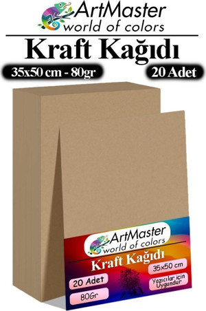ArtMaster Kraft Kağıdı 35x50 cm 20 Adet 80 Gr Hediye Paketleme Kagıdı Çeyiz Kaplama Kağıt Saman Kağıt Çizim Kağıdı