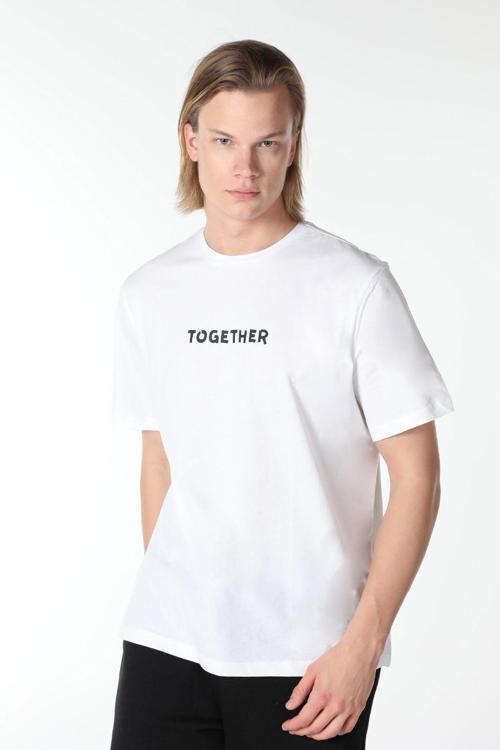 Erkek Baskılı Kısa Kollu Bisiklet Yaka Tişört Beyaz