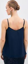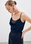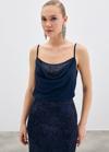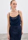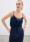 Degaje yaka, ayarlanabilir ip askılı, payet detaylı salaş bluz.