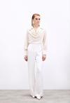 Verde Blanco VerdeBlanco Taşlı Yaka Basic Bluz Krem