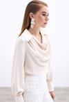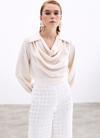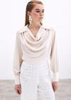 Sateen Degaje Yaka İncili Salaş Bluz - Bej