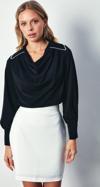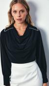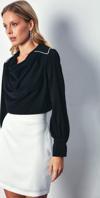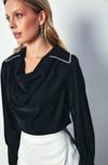 Sateen Degaje Yaka İncili Salaş Bluz - Siyah