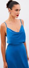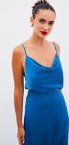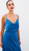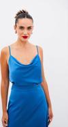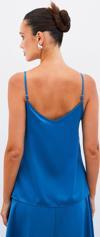 Degaje yaka, ayarlanabilir askılı, salaş saten bluz.
