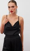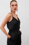 Degaje yaka, ayarlanabilir askılı, salaş saten bluz.