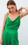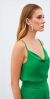 Degaje yaka, ayarlanabilir askılı, salaş saten bluz.
