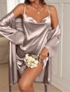 Degajeli İnce Askılı Vizon Saten 2'li Gecelik Sabahlık Takımı