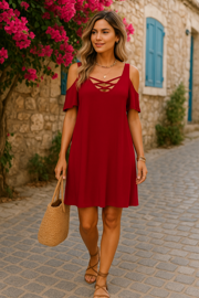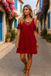 Dekolteli Bağcık Detay Viskon Kumaş Elbise