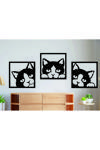 -Dekor Treni 3'lü Minnoş Kedi Dekoratif Ahşap Duvar Aksesuarı,3 mm 1.kalite siyah mdf'den üretilmiş olup üç parçadan oluşmaktadır.