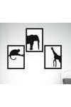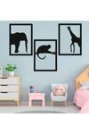 DEKOR TRENİ Fil Zürafa Maymun Duvar Tablo Seti 3 mm 1.kalite siyah mdf'den üretilmiş olup üç parçadan oluşmaktadır.
