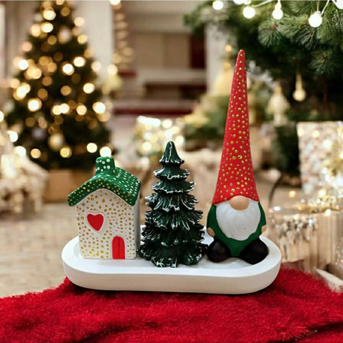 Dekorasyon Bahçesi Kış Temalı 3’Lü Dekor Seti – Cüce, Ev Ve Çam Ağacı Figürlü El Yapımı Taş Tozu Obje