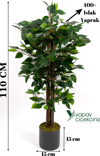 110 cm yapay Benjamin ağacı: Doğal görünümü ve geniş yapraklarıyla yaşam alanlarına tropikal bir hava katar.