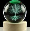 Dekoratif AĞAÇ Tasarımlı Ahşap altlıklı Işıklı Cam Küre 6cm