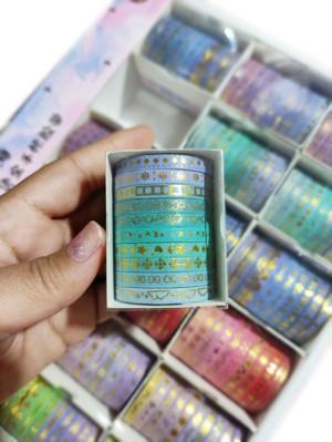 Renkli Yaldızlı Vintage Washi Tape Bant Yapışkanlı Maskeleme Kağıdı 5 lı - Fiyonk - Image 1