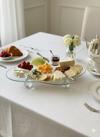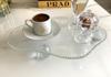 *Dekoratif Cam Tepsi Kristal - Elmas Bulut Modeli Top Ayaklı Cam Kenarı Taşlı Sunumluk