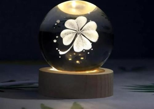 Dekoratif Çiçek Tasarımlı Ahşap altlıklı Işıklı Cam Küre Büyük Boy Cam:8cm Ahşap:2cm