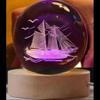 Dekoratif Gemi Tasarımlı Ahşap Altlıklı Işıklı Cam Küre Cam:6cm Ahşap:2cm