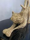 *Dekoratif Hasır Dokuda Tasarlanmış Esneyen Kedi Biblo Sevimli Kedi Heykeli