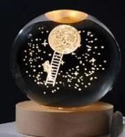 Skygo Dekoratif Merdiven Astronot Tasarımlı Ahşap altlıklı Işıklı Cam Küre Büyük Boy Cam:8cm Ahşap:2cm
