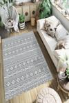 Dekoreko Kaymaz Taban Djt Salon Halısı Star Pamuk Saçaklı Modern Mu118 Gri - Image 1