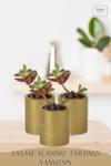 Bitki Tasarımı Ev Dekorasyon Aksesuar Siyah Üzeri Gold Mermer Efektli Toprak Saksı Saksılık Salon Çiçeklik Üçlü Set- 19