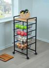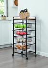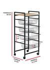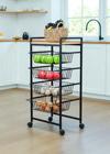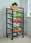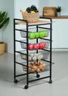 Bye Concept & More DEKORATİF TEKERLEKLİ METAL SEBZELİK 4 TEL SEPETLİ ÇAM AHŞAP RAFLI ÇOK AMAÇLI STAND