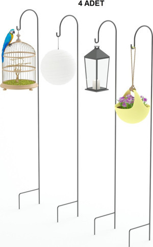 Metal Çubuk Çok Amaçlı Bahçe ve Kamp Kancası Bitki Bahçe Askısı Fener Çiçek Kancası 4 Adet - Image 1