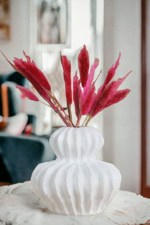 Dekoratif Vazo El Yapımı Beyaz Renk Model 26
