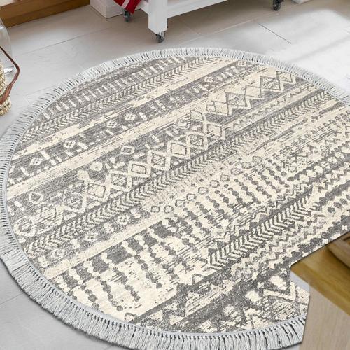 Dekoreko Kaymaz Taban Djt Mutfak Halısı Star Pamuk Saçaklı Yuvarlak İskandinav F5080 Gri