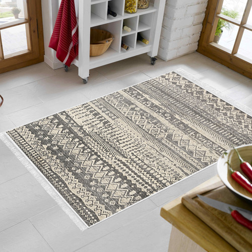 Dekoreko Kaymaz Taban Djt Mutfak Halısı Yıldız Deri Saçaklı İskandinav Al1104 Gri Bej
