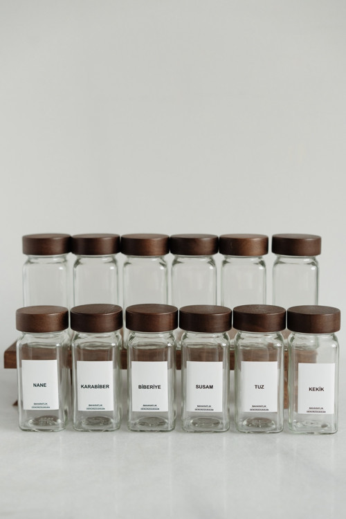 - 25 adet etiket, her bir baharatın adını ve miktarını net bir şekilde yazarak kullanım kolaylığı sunar