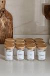 Her bir kavanozun üzerinde yer alan etiketler, baharatların isimleri ve miktarları hakkında net bilgi verir