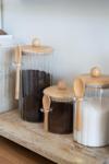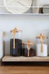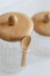 3'lü Bambu Kapaklı Çizgili Cam Kaşıklı Kavanoz Seti (650/1000/1350ml)