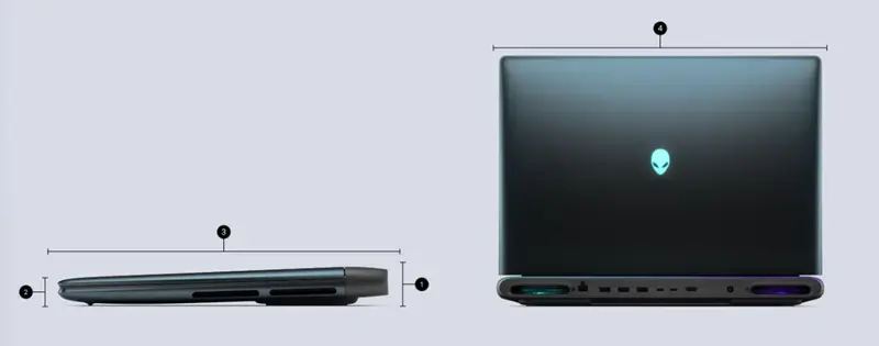 Daha sağlam bir kapak ve neredeyse görünmez menteşesiyle akıcı bir görüntüleme deneyimi oluşturur. Güç ve çok yönlülük için tasarlanan, patent süreci devam eden bu tasarım dairesel hareketleri kolaylaştırır ve dışa doğru uzayarak yarı saydam malzemeleri ve yeni AlienFX aydınlatmasını barındıran uyumlu bir arka tasarımı ortaya çıkarır.
