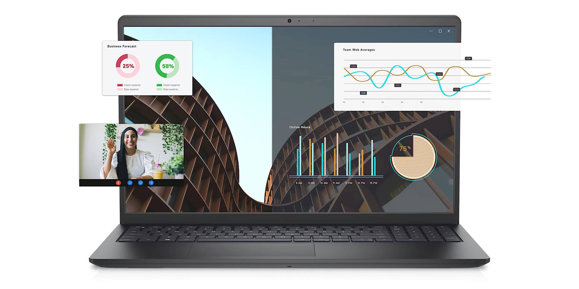 3 taraflı dar bir çerçeve ile elinizdeki işe odaklanın. Büyük dokunmatik yüzey ve tam boy klavye, daha ergonomik bilek açıları ve artırılmış hava akışı için kaldırma menteşesi ile birlikte daha rahat bir kullanım sağlar. İşinizi hızlı bir şekilde halletmek istiyorsanız, 10 tuşlu sayısal tuş takımı ve hesap makinesi tuşu tek bir dokunuşla işe koyulmanızı sağlar. Bir dizi bağlantı noktası ve yuva, ihtiyacınız olan şeye bağlanabileceğiniz anlamına gelir. Ayrıca, Dell ComfortView yazılım teknolojisine sahip bu dizüstü bilgisayar, uzun ekran süresi boyunca göz konforunu optimize etmek için zararlı mavi ışık emisyonlarını azaltmaya yardımcı olur.