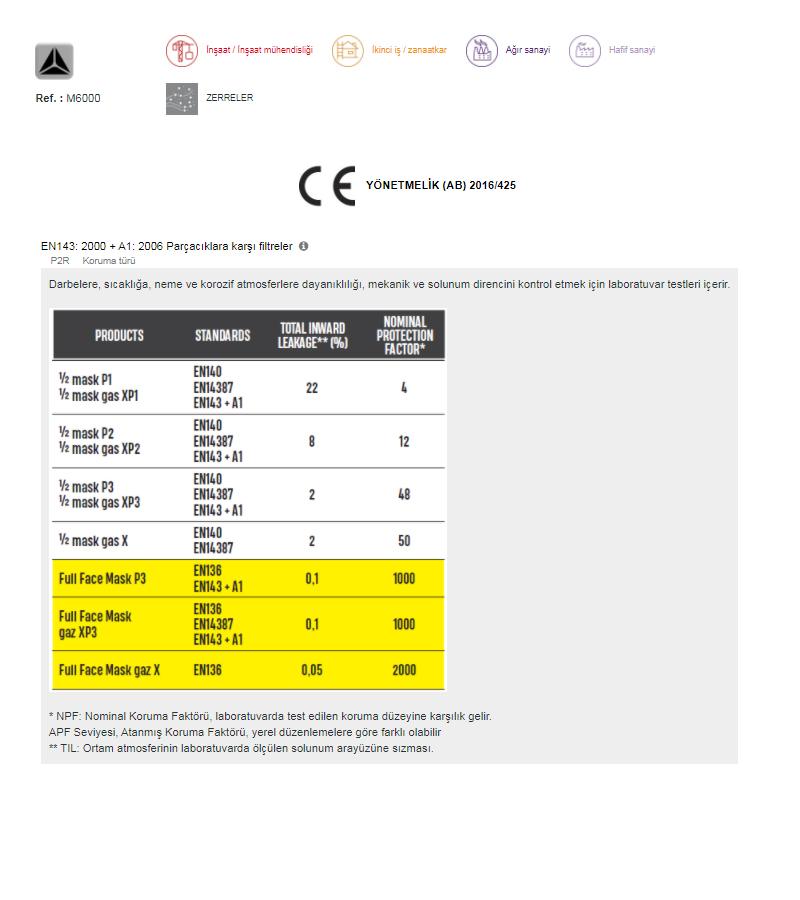 Delta Plus M6000 Abek1 Yarım Yüz Maske Filtresi
