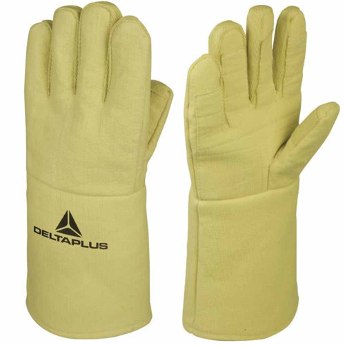 Delta Plus TERK500 XTREM HEAT, aşırı sıcak ortamlar için tasarlanmış ısıya ve kesilmeye dayanıklı takviyeli termal eldivendir.