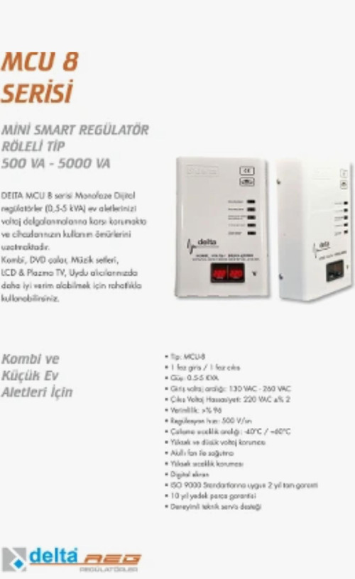 RÖLELİ TİP 500 VA-5000 VA DELTA MCU 8 serisi Monofaze Dijital Regülatörler (0,5 – 5000 VA) ev aletlerinizi voltaj dalgalanmalarına karşı korumakta ve cihazlarınızın kullanım ömürlerini uzatmaktadır