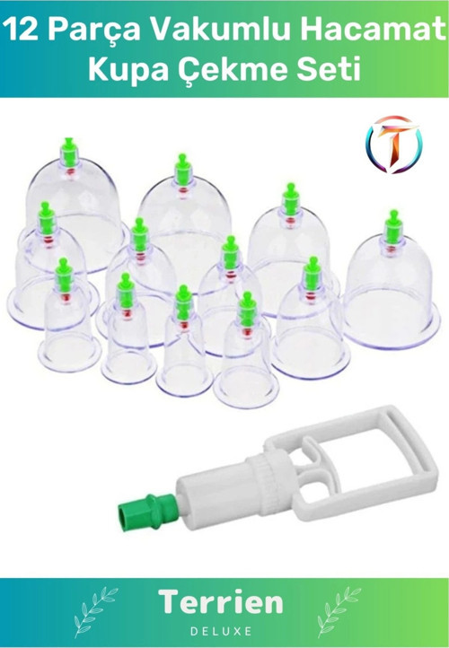 Deluxe Seri 12 Parça Vakumlu Masaj Etkili Hacamat Kupa Çekme Seti