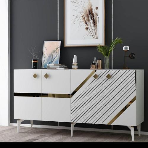 DEMONTE DECOR İri̇s Konsol 4 Kapakli Rafli Beyaz-Altin